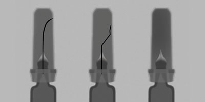In order to inspect each individual DIP in-line and reveal foreign particles, defects and deficiencies that cannot be seen with the human eye or even with sophisticated camera technology, an alternative is needed that can also X-ray opaque preparations and containers. This can be done with gamma or X-rays. However, the use of such radiometric methods was long considered unsuitable for the manufacturing and packaging process of pharmaceuticals. There was too much concern that the radiation could impair the efficacy and safe usability of the product contained.